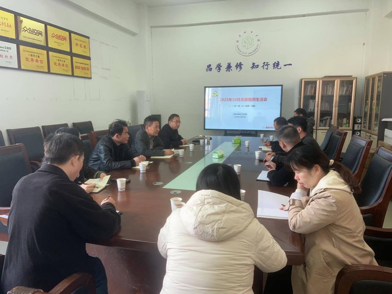 本网讯(通讯员 张灵芳)2025年10月23日下午,按照学校的统一部署,工程训练中心党支部全体教师举行了“一月一课一片一实践”的主题党日活动,主题党日活动由支部书记谭伟石主持。活动议程包括:1.专题学习与研讨;2.交流讨论;3.民主议事。
